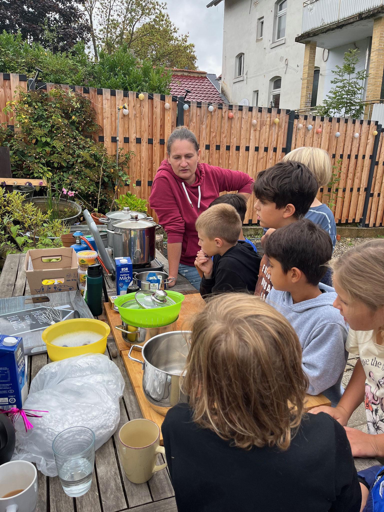 An einem Tag kamen Herr Harz und Herr und Frau Brandau in die Schule und pressten mit den Kindern Apfelsaft. Die Äpfel für den Saft wurden in den Wochen davor von den Kindern der Garten AG vom schuleigenen Apfelbaum gepflückt.